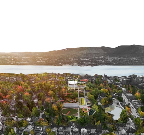 Based on a critical understanding of the urban park as a type, this studio has investigated the interrelationship between architecture and landscape, the relative autonomy of each discipline, and the possibility for translations of techniques, forms, and materials from landscape to architecture and vice versa. Operating within Downing Park, located in Newburgh, New York, a 35-acre landscape designed by Frederick Law Olmsted, Sr. and Calvert Vaux according to the late 18th and early 19th century theory of the Picturesque, students proposed additional programming and landscape adaptations to revitalize the park and catalyze larger social and economic changes for Newburgh.