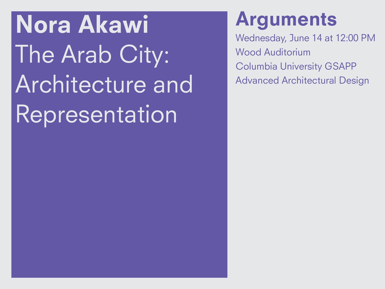 Part of the Arguments Lecture Series organized by the M.S. Advanced Architectural Design program.