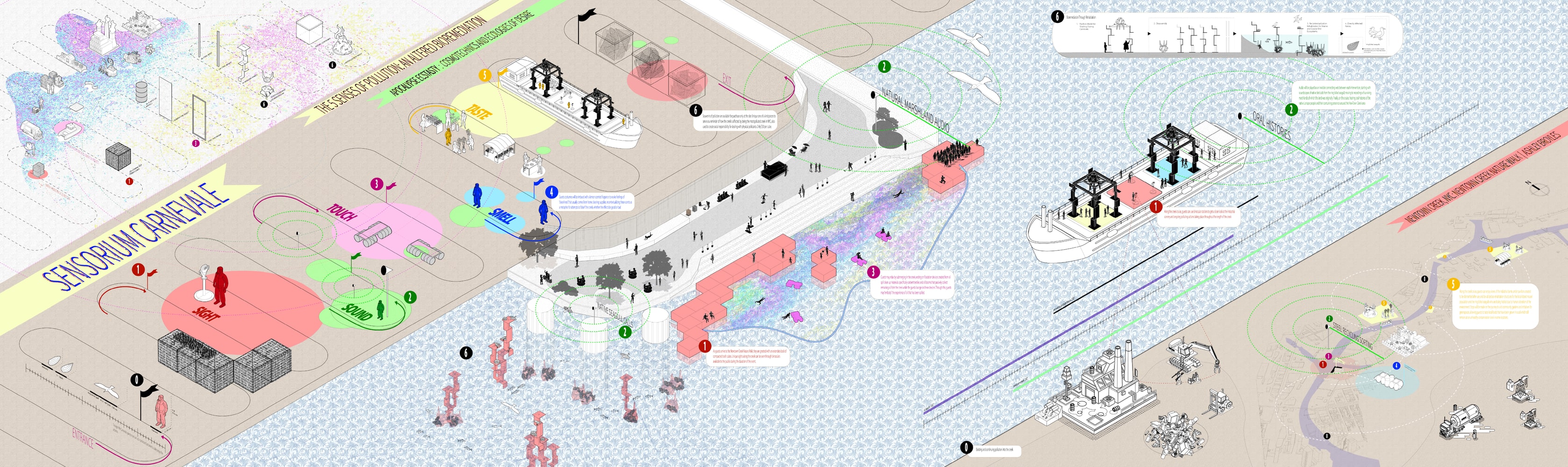 Welcome to the Sensorium Carnevale, where throughout this experience, guests can embody the visible and invisible pollutants of Newtown Creek. What does it mean to live in an apocalyptic environment that has been deemed as one of the most polluted areas in New York City, and how does the designation of the creek as an EPA Superfund Site change how the space is being interacted with? Taking place at the Newtown Creek Nature Walk, guests of the Carnevale will experience what it is like to take an active role in a toxic environment through the five senses: