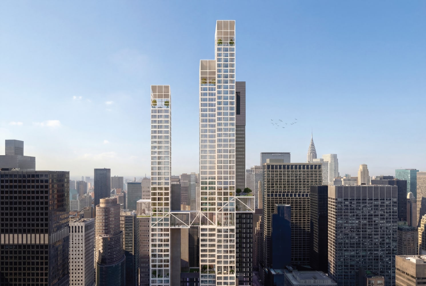 The project proposes a block-scale urban regeneration model for East Midtown, Manhattan, responding to post-pandemic office vacancy, housing shortages, and dysfunctional urban density. The project restructures existing urban fabric by converting obsolete office space into family-oriented housing and introducing mixed-use towers that provide shared and communal programs absent from surrounding aging buildings.