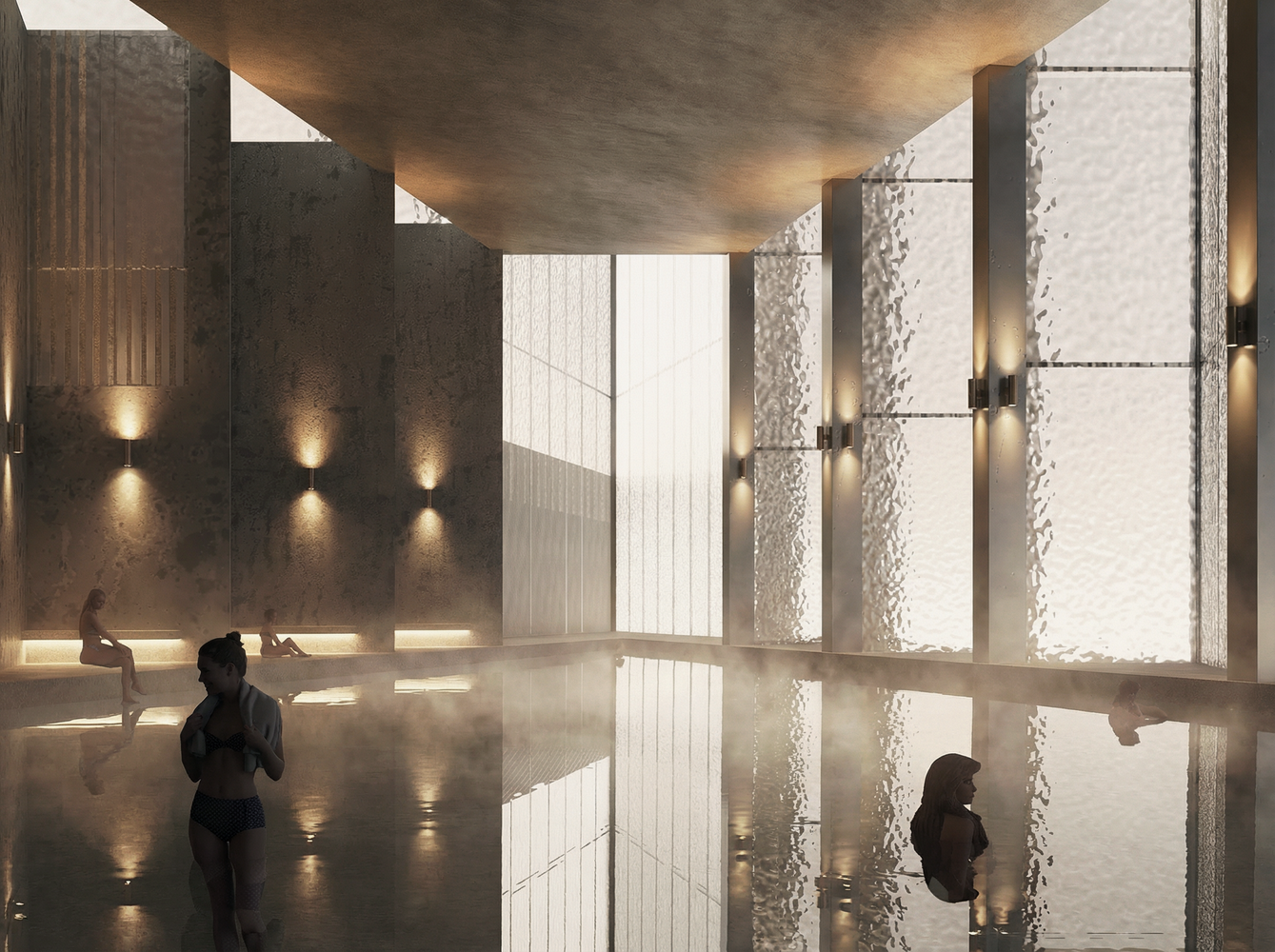 My project repositions underutilized Pier 76, a former NYPD tow pound, into a contemporary bathhouse and sports complex inspired by the ancient bath gymnasium at Sardis. Instead of remaining a flat expanse of asphalt, the pier becomes a dense social and wellness hub that combines hot and cold pools, saunas, lounges, and flexible athletics courts. The primary users are office workers from Hudson Yards and nearby towers, who will typically arrive on foot from the 7 train, the High Line, and the Hudson River Park walkways. By aligning entrances with these major pedestrian flows, the project turns an isolated pier into a natural link between the end of the Highline and Hudson River Park. The goal is to create an all day, high demand program that fights the lonely epidemic, supports physical and mental health, and anchors a more active public life on the Midtown waterfront.