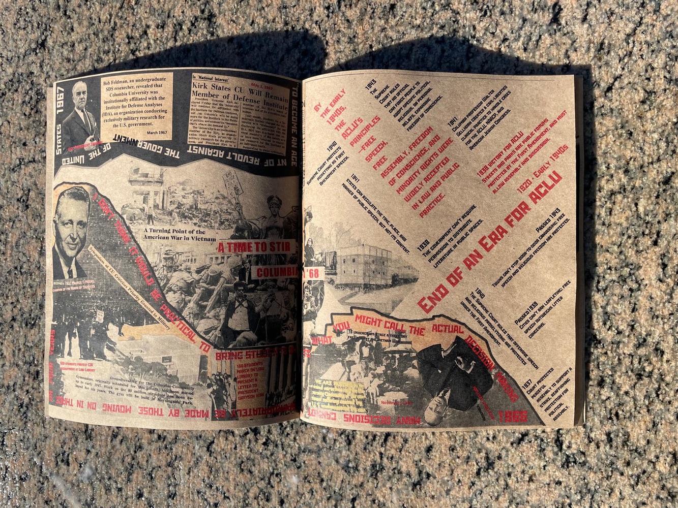 On March 13, 2025, Columbia student and president of Student Workers of Columbia–UAW, Grant Miner, was expelled and fired from job for participating in protests against the ongoing genocide in Gaza. On August 1, 2025, Palestinian-American historian Rashid Khalidi cancelled his course on Modern Middle East History following Columbia’s adoption of the IHRA definition of antisemitism, which misleadingly conflates Jewish identity with the Israeli state, rendering teaching around the issue of Palestine virtually impossible. What does academic freedom mean when students face disciplinary consequences for standing against genocide? What does it mean when faculty must withdraw courses to preserve their freedom to teach? Free to Speak? is a zine that situates these events within Columbia University’s long and complicated history of struggles over political expression and academic freedom. It explores how Columbia has functioned as a testing ground for the articulation of solidarity. Across decades, students and faculty have expressed solidarity through occupations, resignations, encampments, and material culture while confronting censorship, discipline, and policing. If more than a century after Columbia’s first major speech controversies, the ability to expose, criticize, and confront oppressive regimes on campus and in the classroom remains disputed. Free to Speak? asks: what forms of expression might solidarity take next?