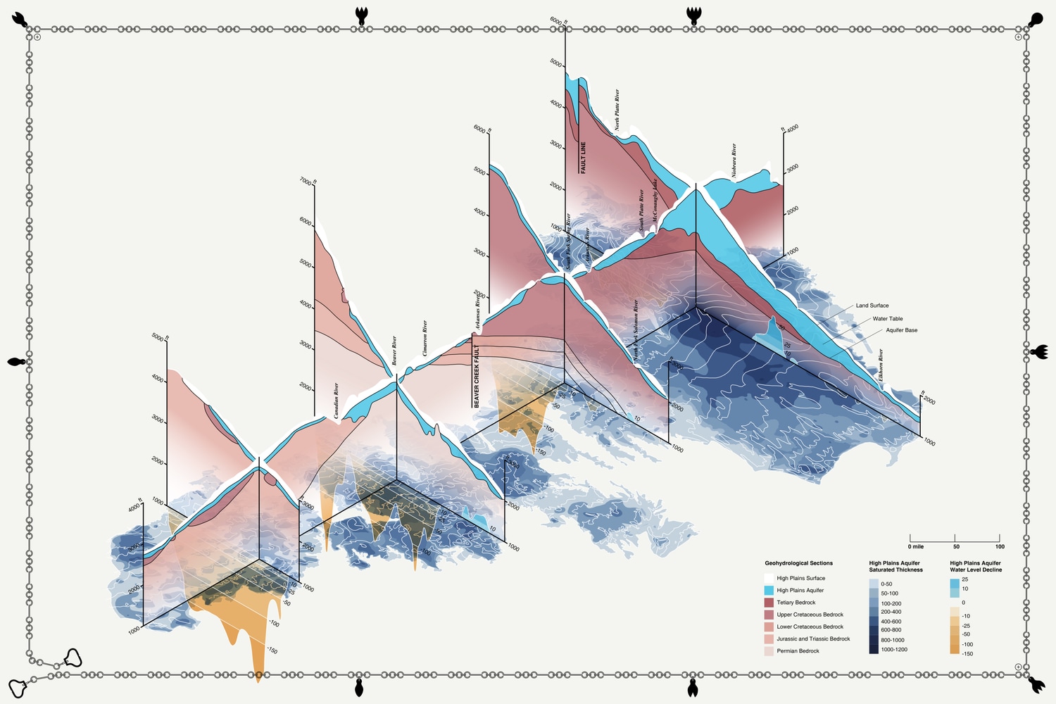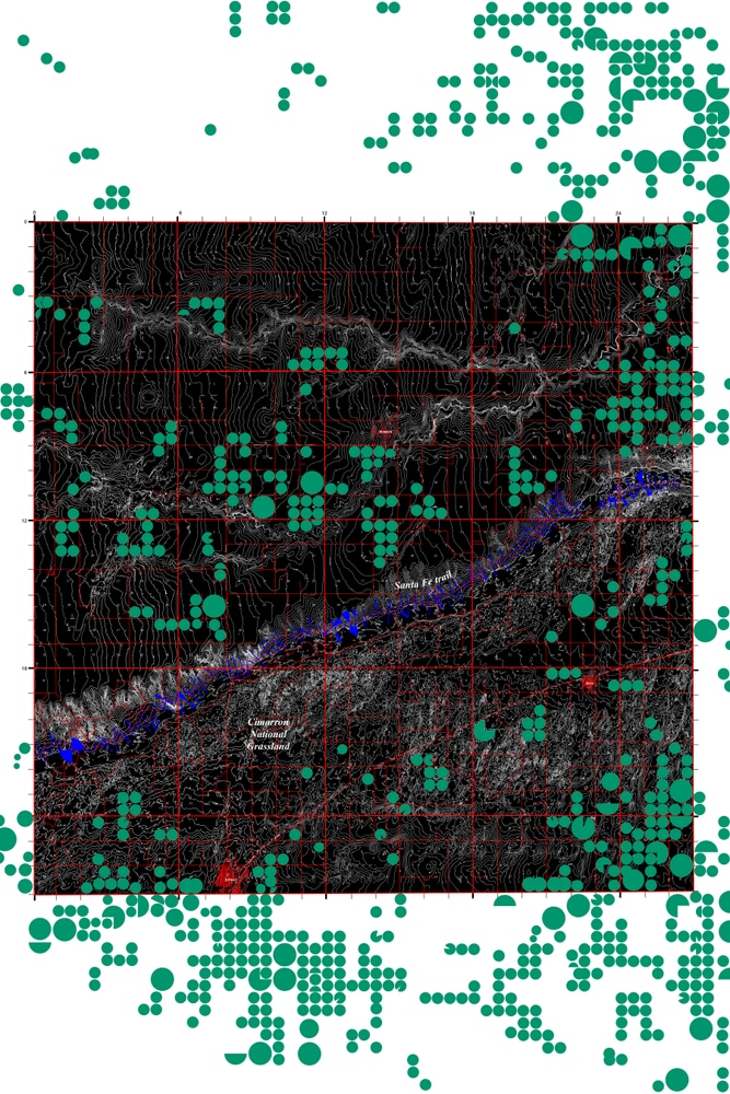 A team of surveyors and farmers travels with a temporary pavilion, moving from site to site across the High Plains, occupying one fallow center pivot system for six months at a time. The pavilion provides shade structures and large-scale signage to promote awareness and advocate for change. It is also the billboard of our planetary world’s fair.