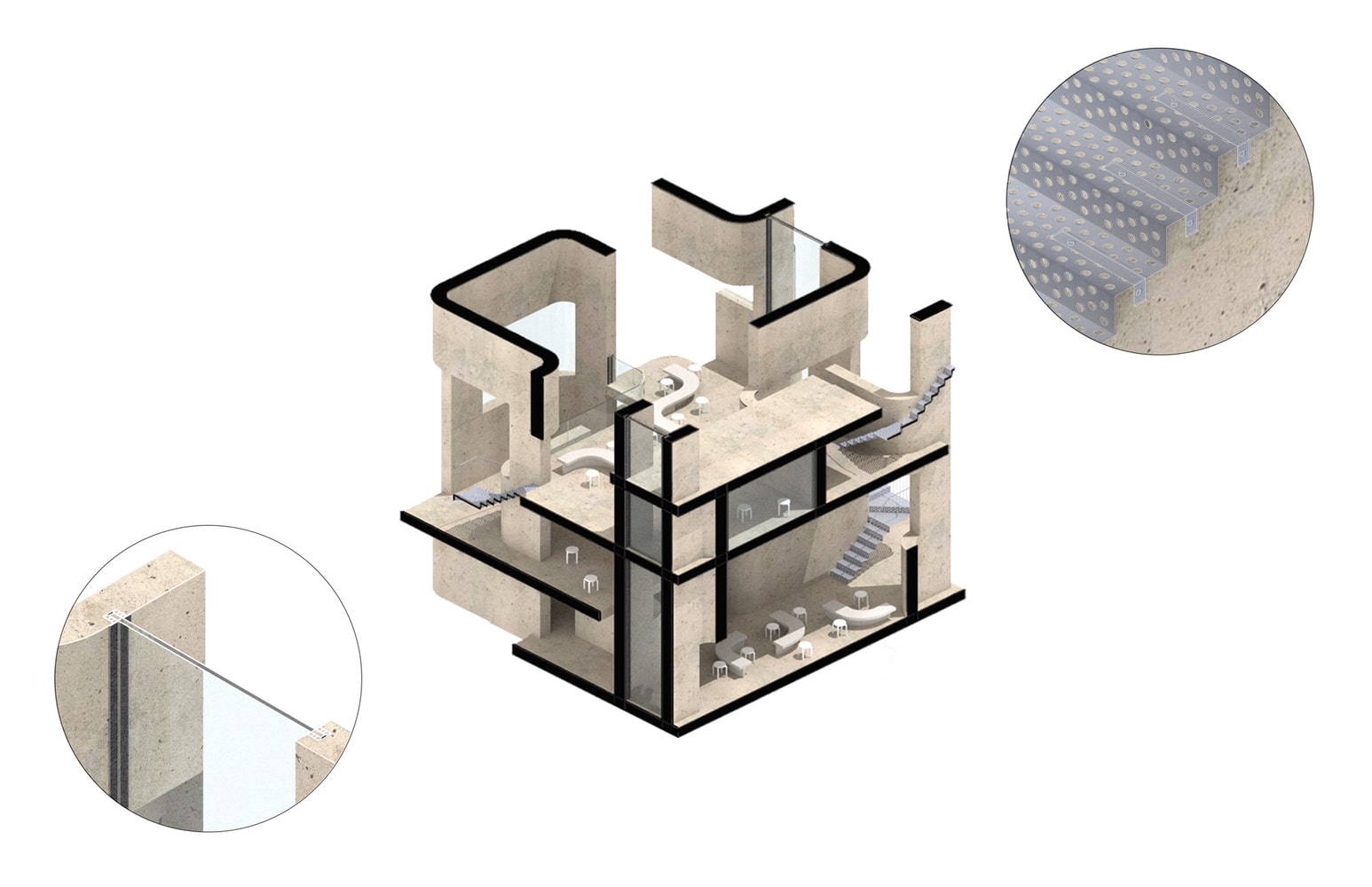 Classrooms are often explicitly defined spaces that designate an area for learning. This traditional sense of the classroom implies that children learn mostly within those four walls. However, the act of learning is not confined to an enclosed classroom; it is developed through a series of interactions, relationships, and situations that are encountered throughout the day. This proposal for a new PS 64 incorporates a continuity of spaces with a fragmentation of vertical platforms to shape a school that is informed by human activities and relationships.