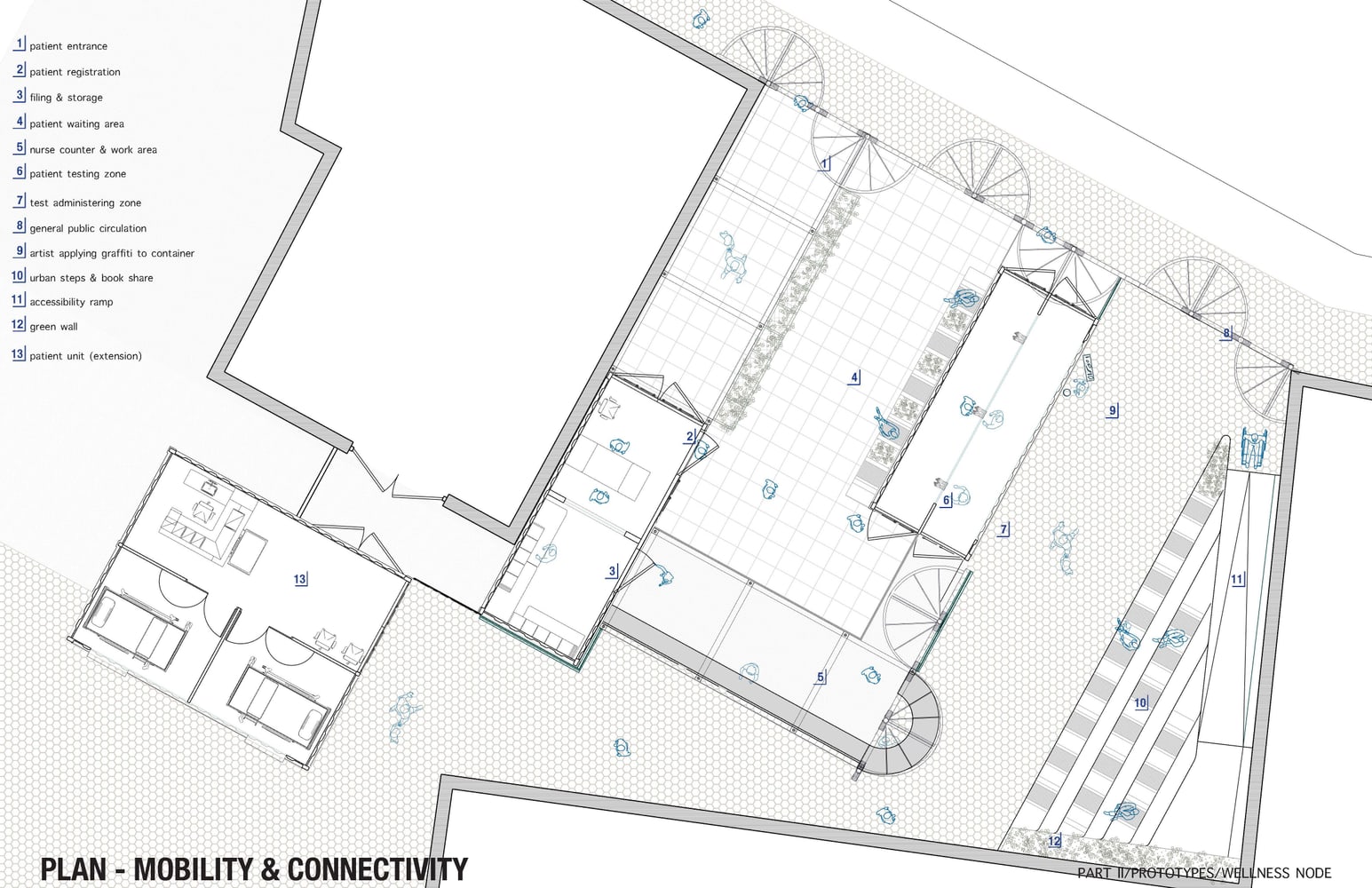 We are introducing a new form of urban micro-infrastructure that will serve as a programmatic host and generator for rebuilding the city, activating the currently untapped interstitial tissue of Beirut. Such interstices serve as a prototypical network for infrastructural reform, addressing the lack of essential services, facilitating economic recovery, promoting community engagement, and assuring embedded resilience.