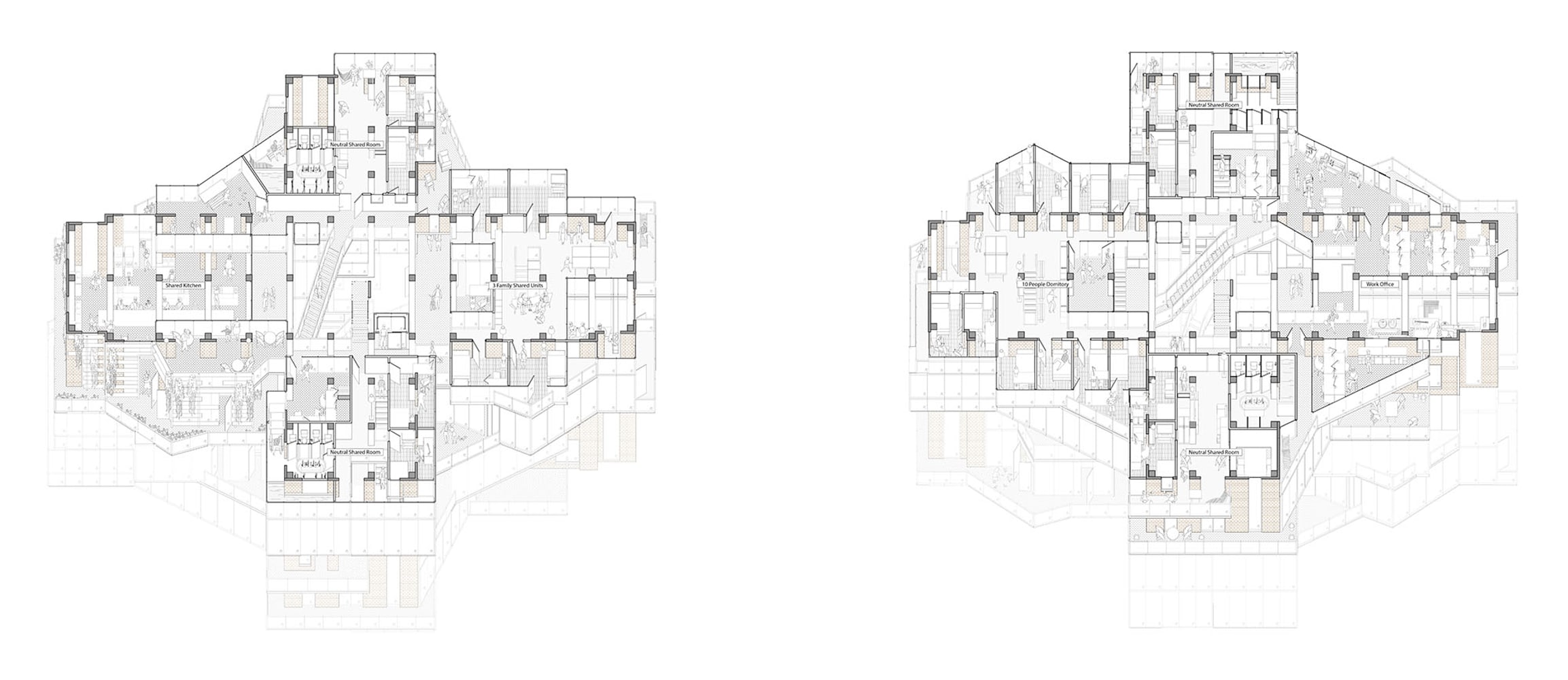 Harlem’s NYCHA subsidized housing projects are hybridized through tower bridging and refurbishment that support civic action and skill-building, while providing shops and spaces for community economic development. The new Wagner Houses integrate the industrial and domestic realms with experimental live-work-learn co-ops to address isolation, unemployment, and unaffordable housing, while allowing residents to earn wages and build creative businesses as they build their efficient collective homes.